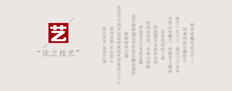 曲陽縣優(yōu)藝園林雕塑有限公司是一家致力于城市雕塑及園林工程雕塑創(chuàng)意、設(shè)計(jì)、制作、安裝為一體的專業(yè)性雕塑工程公司。公司坐落于全國著名的雕刻之鄉(xiāng)——河北省保定市曲陽縣,為適應(yīng)日益增長(zhǎng)的客戶需求及高標(biāo)準(zhǔn)的工程定制項(xiàng)目,多位志同道合的傳統(tǒng)手工藝人合資組建本公司。