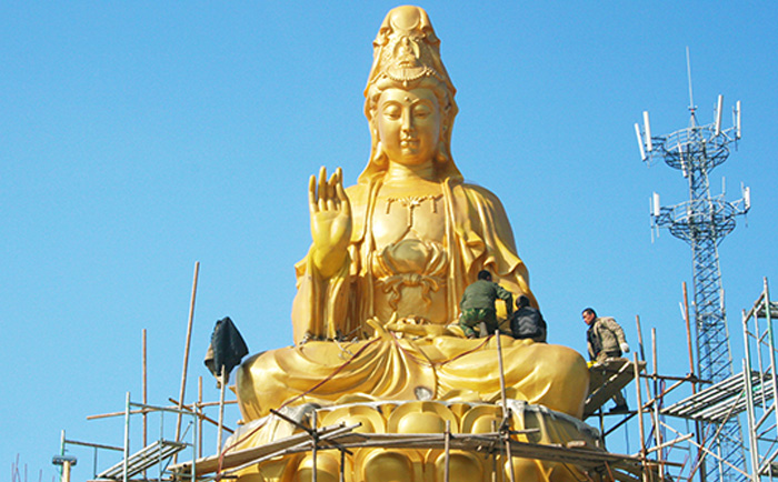 我廠專(zhuān)業(yè)致力于銅佛像雕塑設(shè)計(jì)、制作、安裝,配以嫻熟精致的唐彩工藝、貼金工藝等多種表面裝飾工藝技術(shù),輔以佛法教理,誠(chéng)心雕塑,用心制作,所塑諸佛、菩薩圣像皆如法如儀,相好莊嚴(yán),讓瞻仰者生歡喜心和恭敬心。